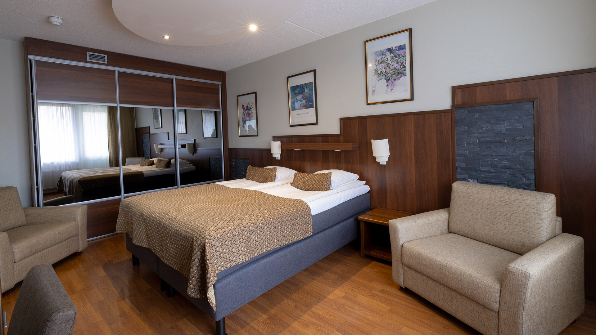 Sviitti on täydellinen valinta, kun haluat lomallesi tilavuutta ja pientä luksusta – olipa kyseessä romanttinen irtiotto, juhlahetki tai vain ansaittu hengähdys arjen keskellä. Jokaisessa sviitissä on erillinen makuuhuone ja oleskelutila sekä oma parveke, jolta avautuu näkymä hotellin ympäristöön. Runsas aamiaisbuffet sekä kylpylän vapaa käyttö sisältyvät huonehintaan.